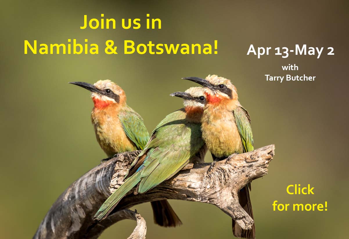 Southwestern Africa's bird specialties, striking scenery, wilderness, and the famed game of Etosha and the Okavango Delta.