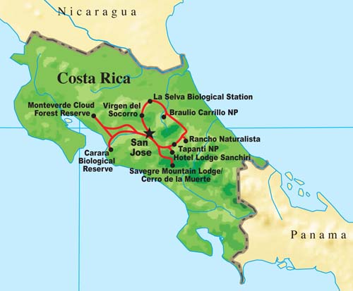 The geological history of Costa Rica has had an enriching effect on the country's natural history. As part of the land bridge that connected North and South America some five million years ago, Costa Rica was a mixing ground for birds from the north and south, a fact well reflected in the country's avifauna today. Here we find a strong representation of Neotropical families such as hummingbirds, motmots, potoos, jacamars, puffbirds, and toucans. In proportion to its size, Costa Rica's diversity parallels that of the Andean countries of South America. Many of the habitats are similar: lowland rainforest at La Selva in the Rio Sarapiqui region, misty cloudforest at Monteverde, cool temperate forest on the slopes of volcanoes, and even paramo atop Cerro de la Muerte. On the Pacific slope, the transition from humid forest to drier habitats more typical of northern Middle America adds yet a different dimension. Although the diversity here is great, preparation for a visit to Costa Rica is no longer the daunting task it once was. The classic field guide by Stiles and Skutch and a newer guide by Garrigues and Dean make studying for a trip here a real pleasure!